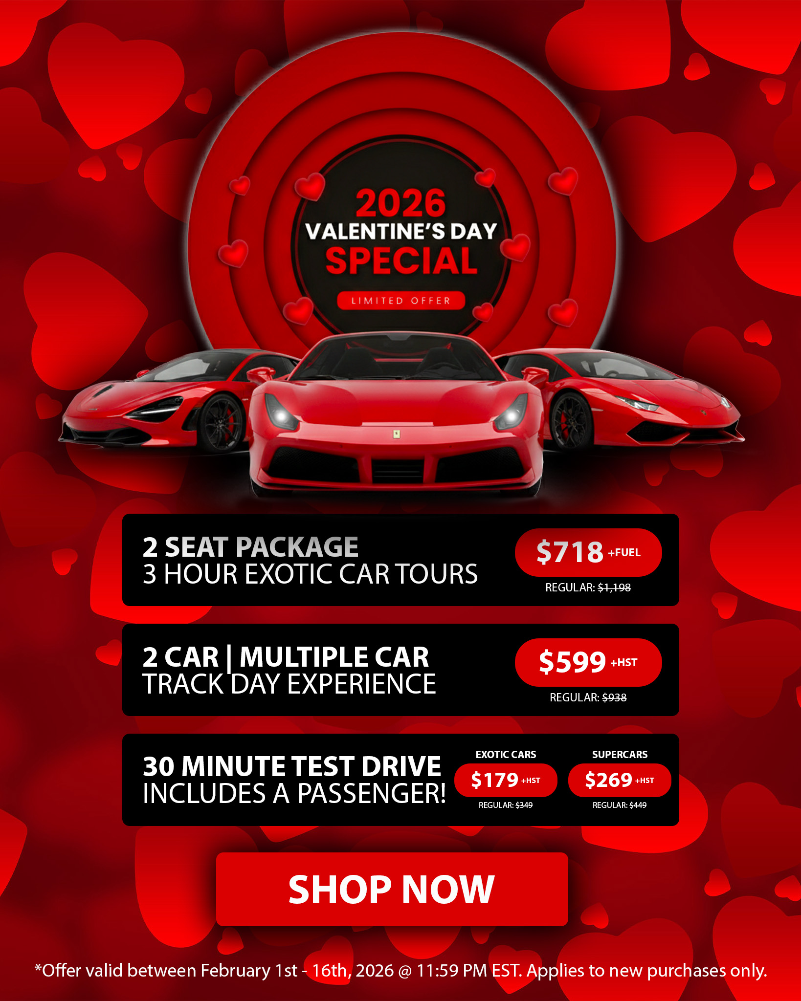 In 2003, we created Canada’s first Exotic Car driving experience company. Today, 100% Canadian and Family operated company with over 20 years of experience, GTA Exotics continues to offer the industry’s best service, with excellent prices and the latest Exotic Cars and Supercars.